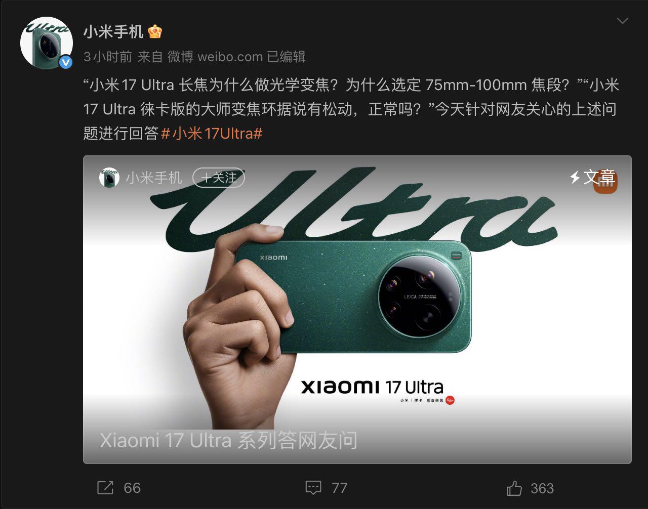 小米集中回应 17 Ultra 争议:变焦环松动属正常结构设计