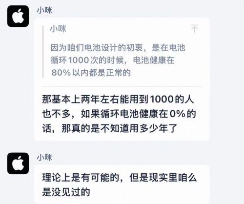 面对讨论,Apple Store 官方旗舰店客服在多个渠道回应称,苹果电池的设计目标是在经历约 1000 次循环后仍保持 80% 以上容量,且「两年内用到 1000 次循环的人并不多」。